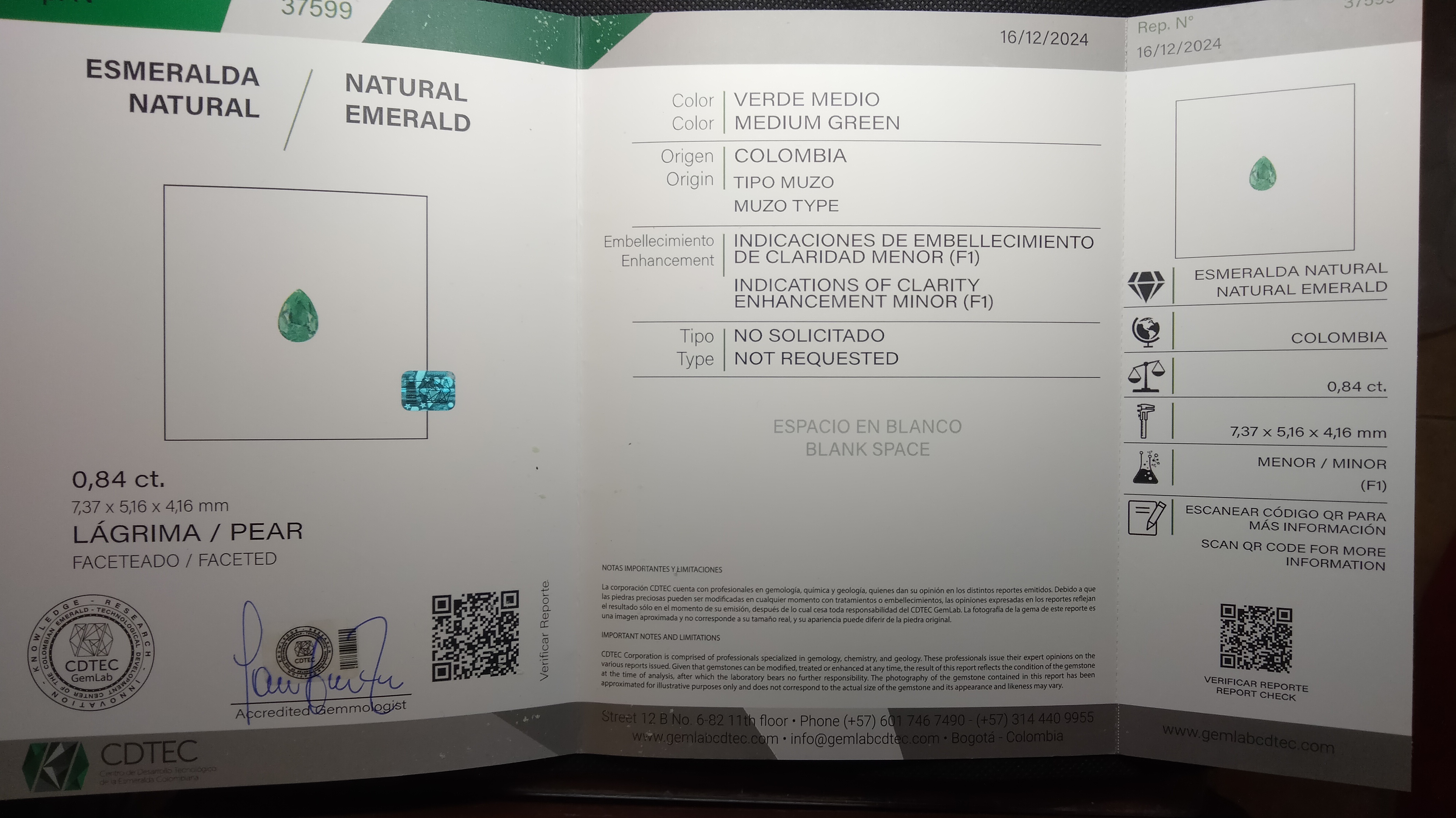 Certification: CDTEC (Colombian Gemological Laboratory)